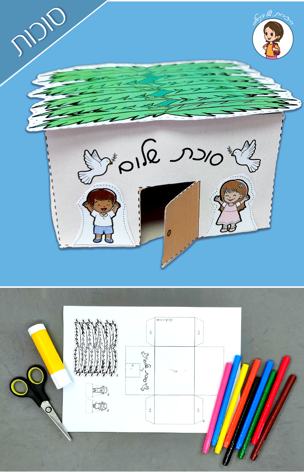 סוכות- סוכה תלת מימדית לגזירה והדבקה